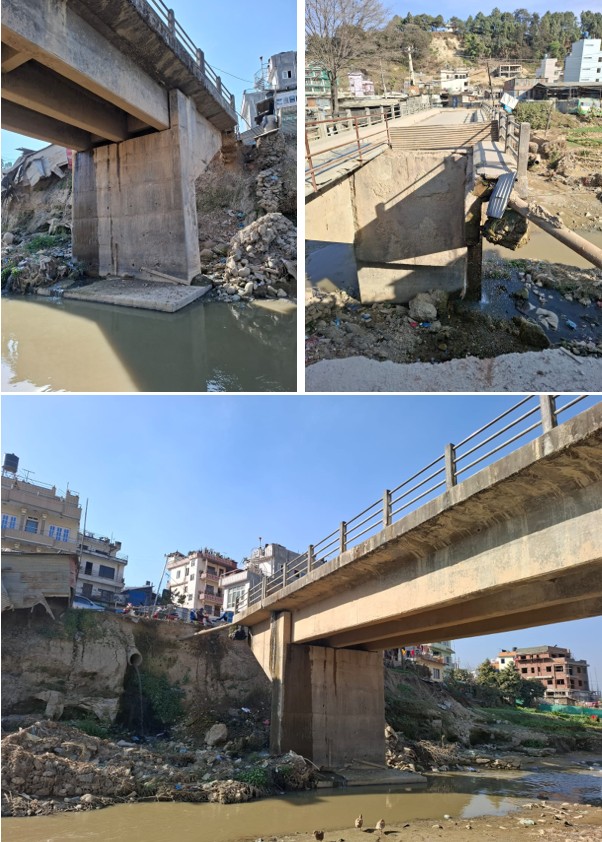 All permanent bridges have the same hydrological and hydraulic requirements as per bridge design standards used in Nepal. If these guidelines are strictly followed, the required bridge deck level would be much higher than the corridor road level. Similarly, the required waterway for the bridge would be significantly wider than the available river width between the corridors. This results in steep approach roads, which invite accidents, as seen at the Bagmati Bridge at Manohara Dovan near Chyasal. To address this issue, a ramp can be used, as in the case of the Sanepa to Kuleshwor Bridge. However, additional space is required for the ramp, which is rarely available in the dense settlements of the Kathmandu Valley.
